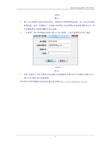 3. 请在“续费卡号”和“卡密码”栏分别输入您所购续费卡背后的卡号和密码(如图 14-1),