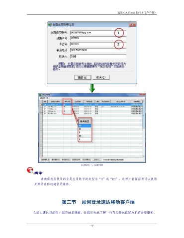 速达 OA.Cloud 系列《用户手册》 160201~160203 提示 请确保您所使用的全局应用账号的类型为“H”或“RH”,这样才能保证您可以使用 此账号在移动端登录账套。 第三节 如何登录速达移动客户端 在通过速达移动客户端登录系统前,让我们先来了解一些有关登录设置方面的必要事项。 - 4 -
