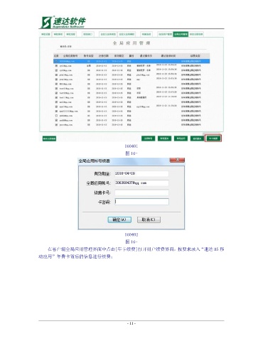 160401 图 16- 160402 图 16- 在客户端全局应用管理界面中点击[年卡续费]打开用户续费界面,按要求录入“速达 H5 移 动应用”年费卡背后的信息进行续费; - 11 -