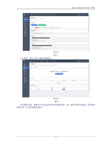 速达 OA.Cloud 系列《用户手册》 080303 图 8- 点击短信→签名管理→获取专属签名; 080304 图 8- 短信推送设置,获取平台对发送短信执行情况的回执。客户需填入软件生成的,短信接口 设置中的“短信状态推送地址”。 - 6 -