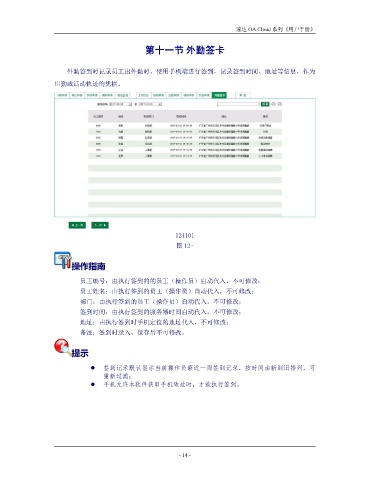 外勤签到时记录员工出外勤时,使用手机端进行签到,记录签到时间、地址等信息,作为